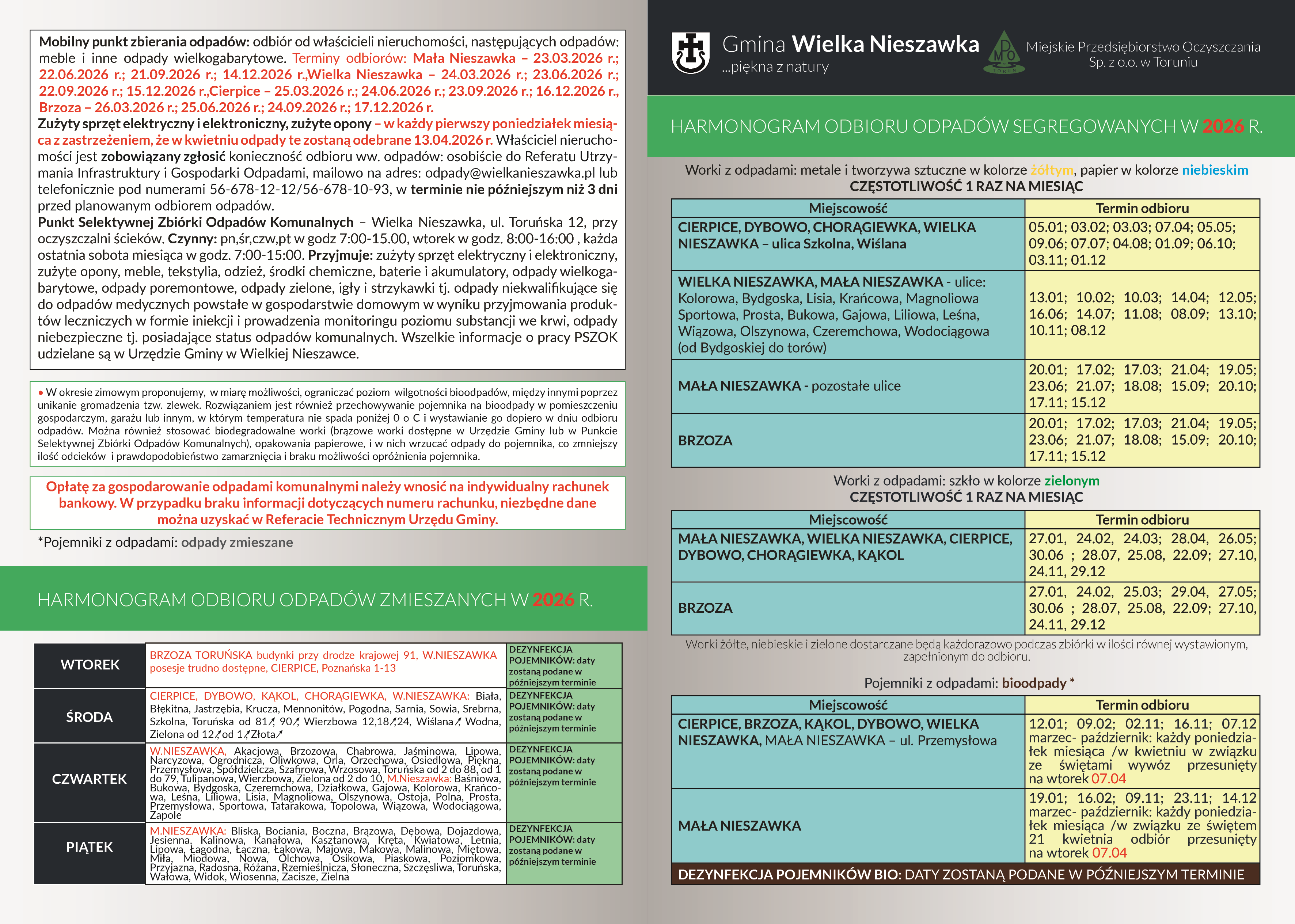 Harmonogram wywozu odpadów