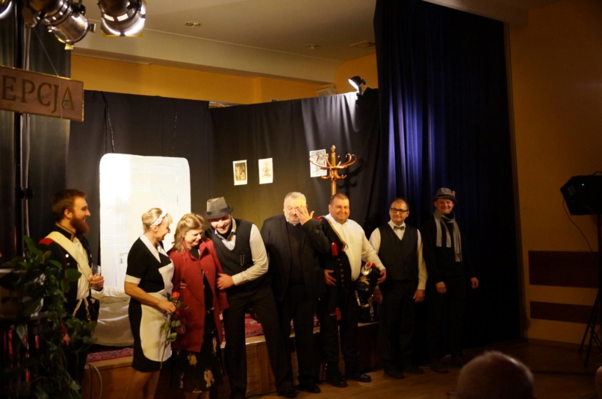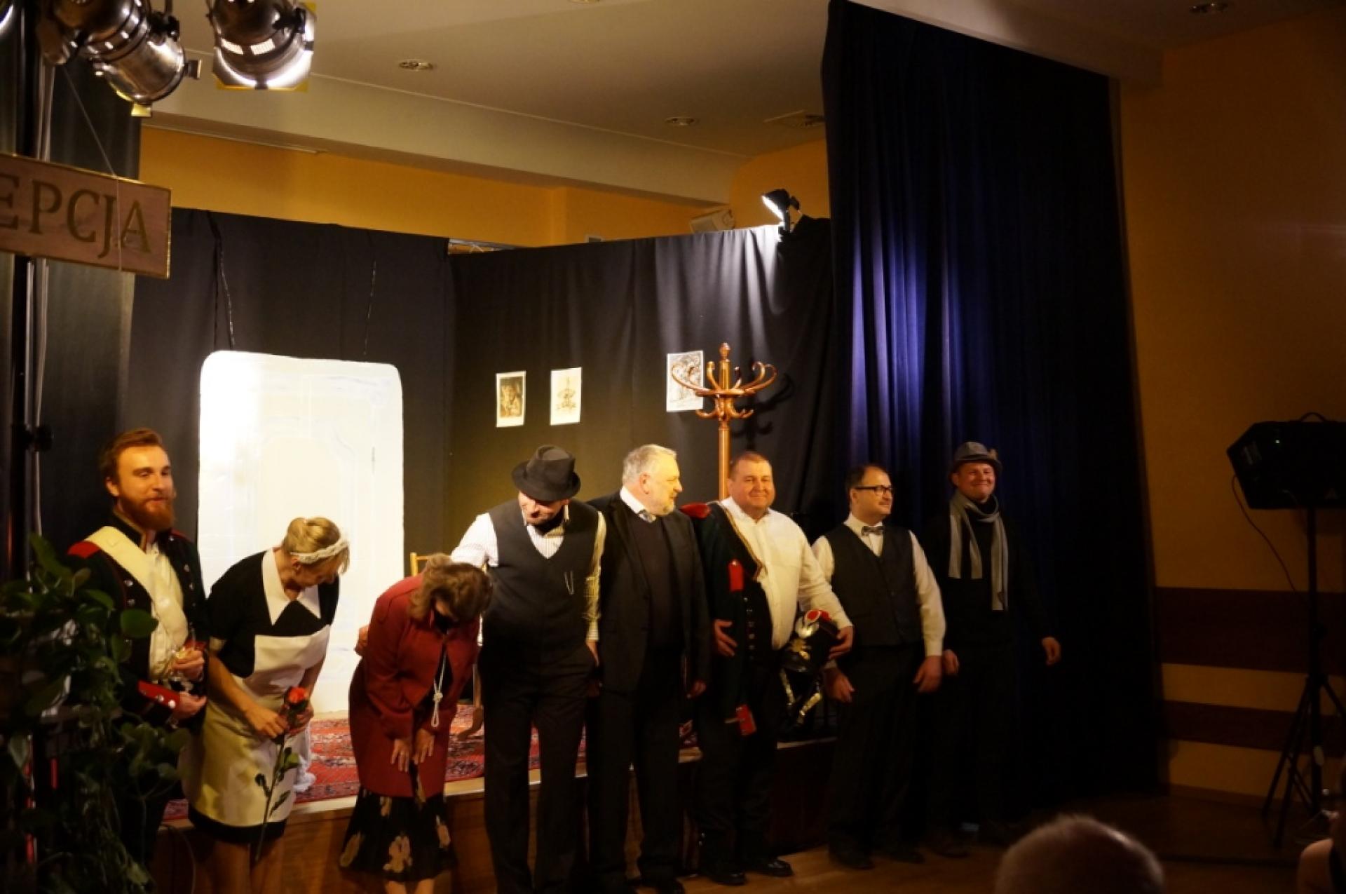 Nasi gminni artyści po raz kolejny udowodnili swój wysoki poziom artystyczny oraz pokazali niezbędne w tym przedstawieniu vis comica. Bardzo ciekawym zabiegiem reżyserskim okazały się przerywniki w postaci przedwojennych piosenek, które korespondowały z treścią przedstawienia, wykonywanych przez nasze młode wokalistki. Widzowie obecni na przedstawieniu nagrodzili wykonawców zasłużonymi brawami i upominkami.