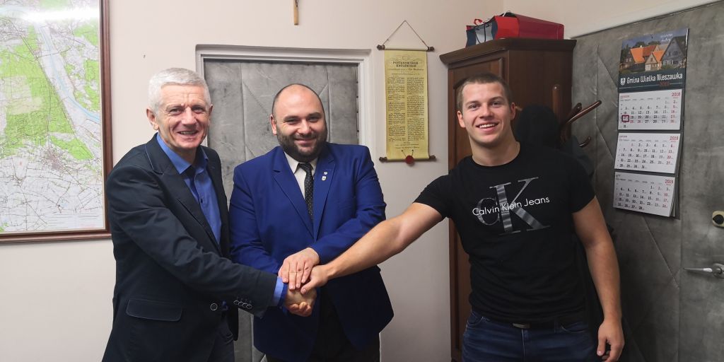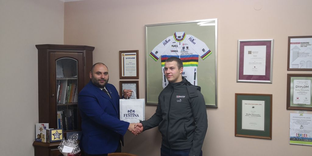 W dniu 21 grudnia 2018 r. w Urzędzie Gminy w Wielkiej Nieszawce odbyło się spotkanie Wójta Gminy Pana Krzysztofa Czarneckiego z Panem Cezarym Łączkowskim mieszkańcem gminy Wielka Nieszawka. Wójt Gminy pogratulował zaproszonemu gościowi wybitnych osiągnięć sportowych i zdobycia Mistrzostwa Świata Juniorów w sprincie indywidualnym podczas Mistrzostw Świata Juniorów w kolarstwie torowym odbywających się w miejscowości Aigle w Szwajcarii w dniach 15-19 sierpnia 2018 r. Z tej okazji wręczył Panu Łączkowskiemu list gratulacyjny i ufundowany prezent. Na spotkanie przybył także Dyrektor Sportowy TKK Pacific Toruń Pan Leszek Szyszkowski.