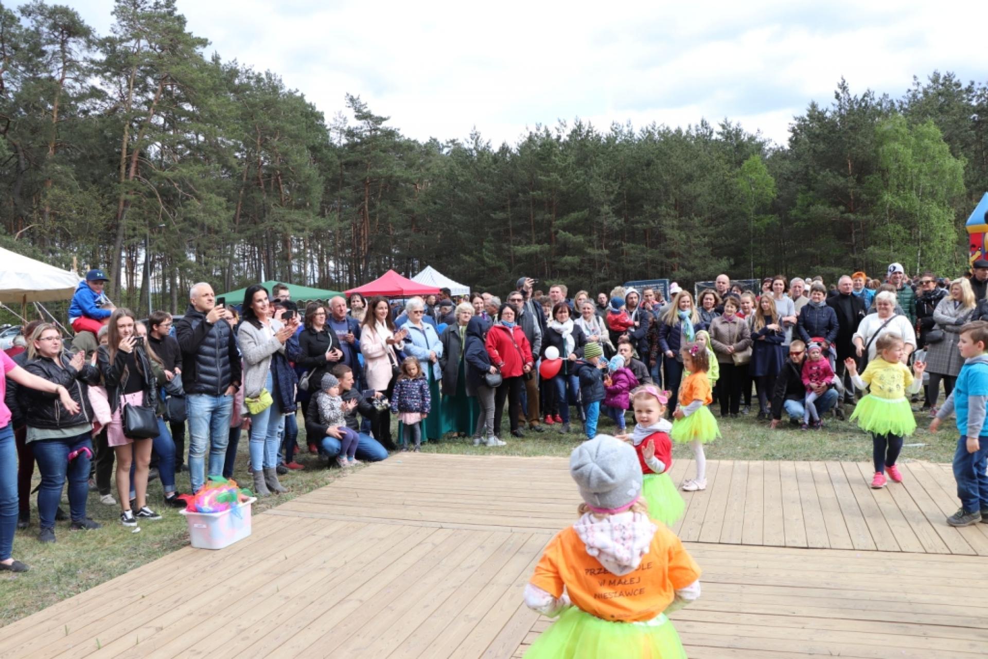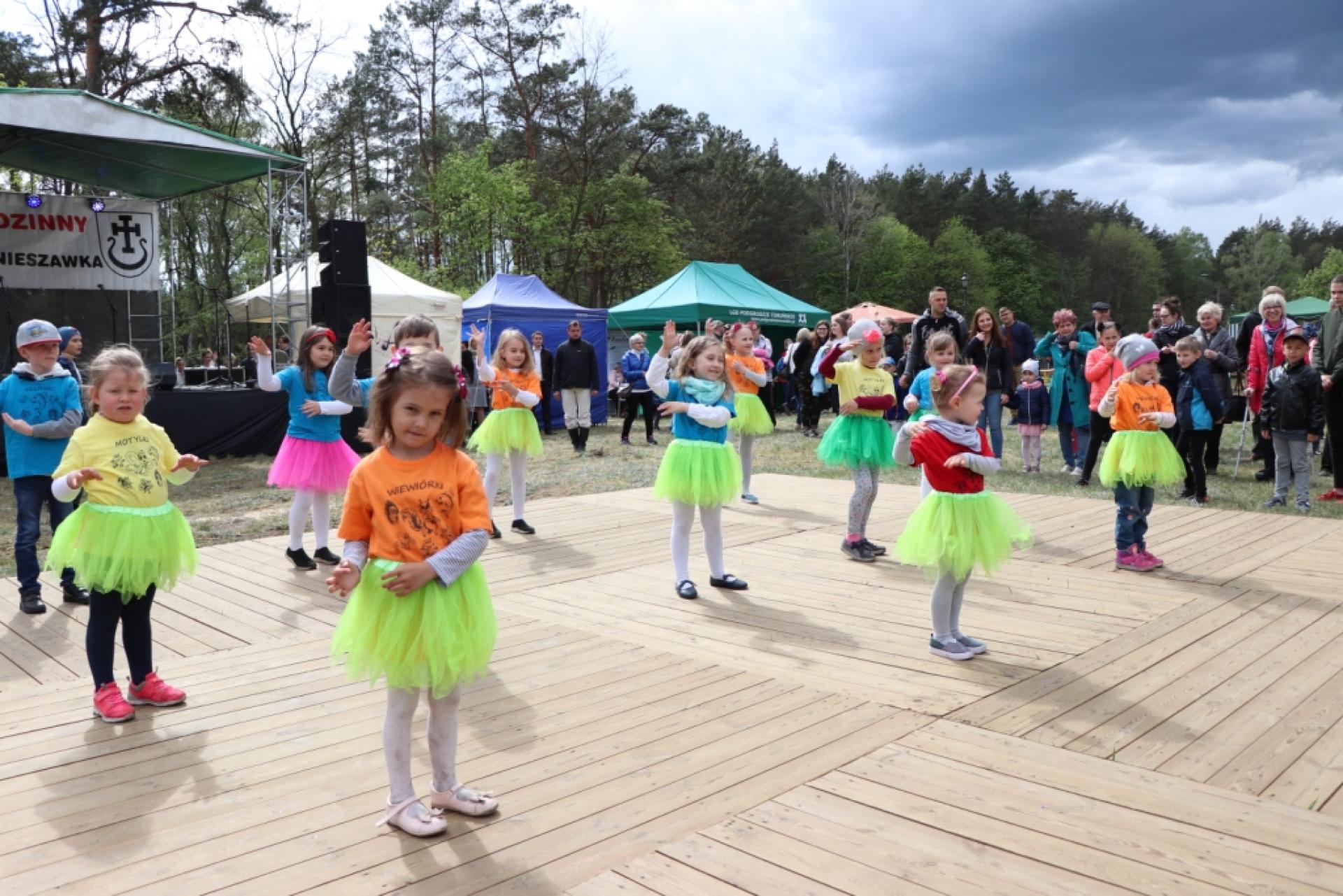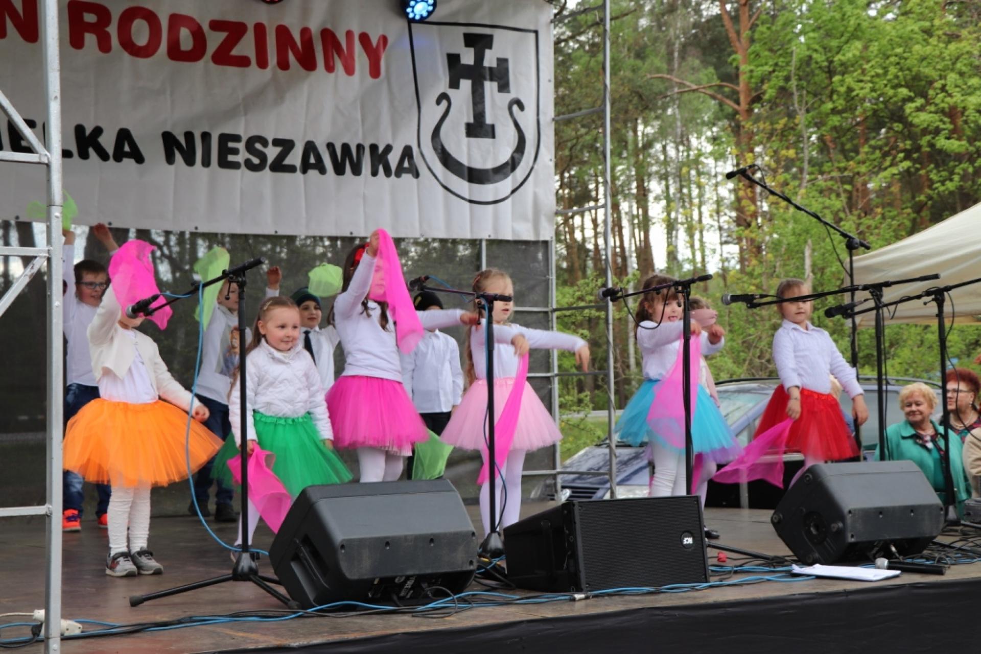 Majówkę rozpoczęliśmy uroczystą mszą świętą, następnie przeszliśmy na plac gdzie powitała wszystkich gości i mieszkańców Kapela Biesiadna „Toruniacy”. Na scenie mogliśmy podziwiać :muzyczną grupę „GAMA”, grupę wokalną „PULS” oraz solistów: Martynę Barczak, Dominikę Wyborską, Magdalenę Sobecką , Igora Witalisa, Wiktorię Pawłowską, Zosię Myszkowską oraz Lenę Wojciechowską działające  przy Gminnym Centrum Kultury  w Małej Nieszawce pod opieką p. Aliny Sobeckiej. Dzieci z Przedszkola w Małej Nieszawce zaprezentowały kilka układów tanecznych pod opieką p. Izabeli Sicińskiej i p. Marty Zalewskiej. Ponadto na scenie zaprezentowały się zespoły seniorów: „WSPOMNIENIE” (pod opieką p. Ewarysta Gajka), „LEŚNA KRAINA” (pod kierunkiem p. Jarosława Dąbrowskiego), „APPASSIONATA” (pod kierunkiem p. Józefa Hołubka) i wielu innych wspaniałych artystów. Swoje programy artystyczne przedstawiły także dzieci i młodzież  z gminnych szkół: Szkoły Podstawowej im. Jana Pawła II w Małej Nieszawce oraz  Szkoły Podstawowej im. Kornela Makuszyńskiego w Cierpicach. Odbyło się wiele konkursów z nagrodami: m.in. koło fortuny, quiz wiedzy o gminie i parafii, bieg w workach, licytacja, rzut jajkiem itp. W trakcie majówki było wiele darmowych atrakcji dla dzieci m.in. zjeżdżalnie, zamki itp. Mieszkańcy i goście  mogli skorzystać ze stoisk  z wyrobami lokalnymi: grochówka przez Stowarzyszenie Wspólne Gniazdo, ciasta, potrawy z grilla itp. Na scenie zaprezentowali się również mieszkańcy naszej gminy Państwo Zyta i Jerzy Stankiewicz z cudownym tangiem.  Jak co roku odbyła się zabawa taneczna z zespołem ATUT BAND. Atrakcją wieczoru był koncert Rafała „Zwierzaka” Zwierzyńskiego oraz zespołu Strusie4.