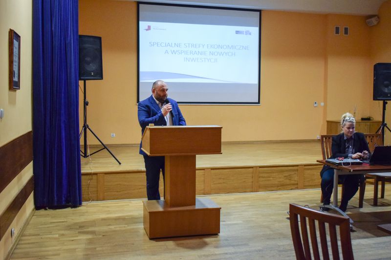 W poniedziałek 14.10.2019 r. w odpowiedzi na zaproszenie Wójta Gminy Wielka Nieszawka Krzysztofa Czarneckiego w GCK Mała Nieszawka gościliśmy przedstawicieli Pomorskiej Specjalnej Strefy Ekonomicznej oraz Banku Gospodarstwa Krajowego, którzy przedstawili prezentacje zaproszonym przedsiębiorcom z Gminy. Zaproszeni goście z Pomorskiej Specjalnej Strefy Ekonomicznej przedstawili prezentację pt.: