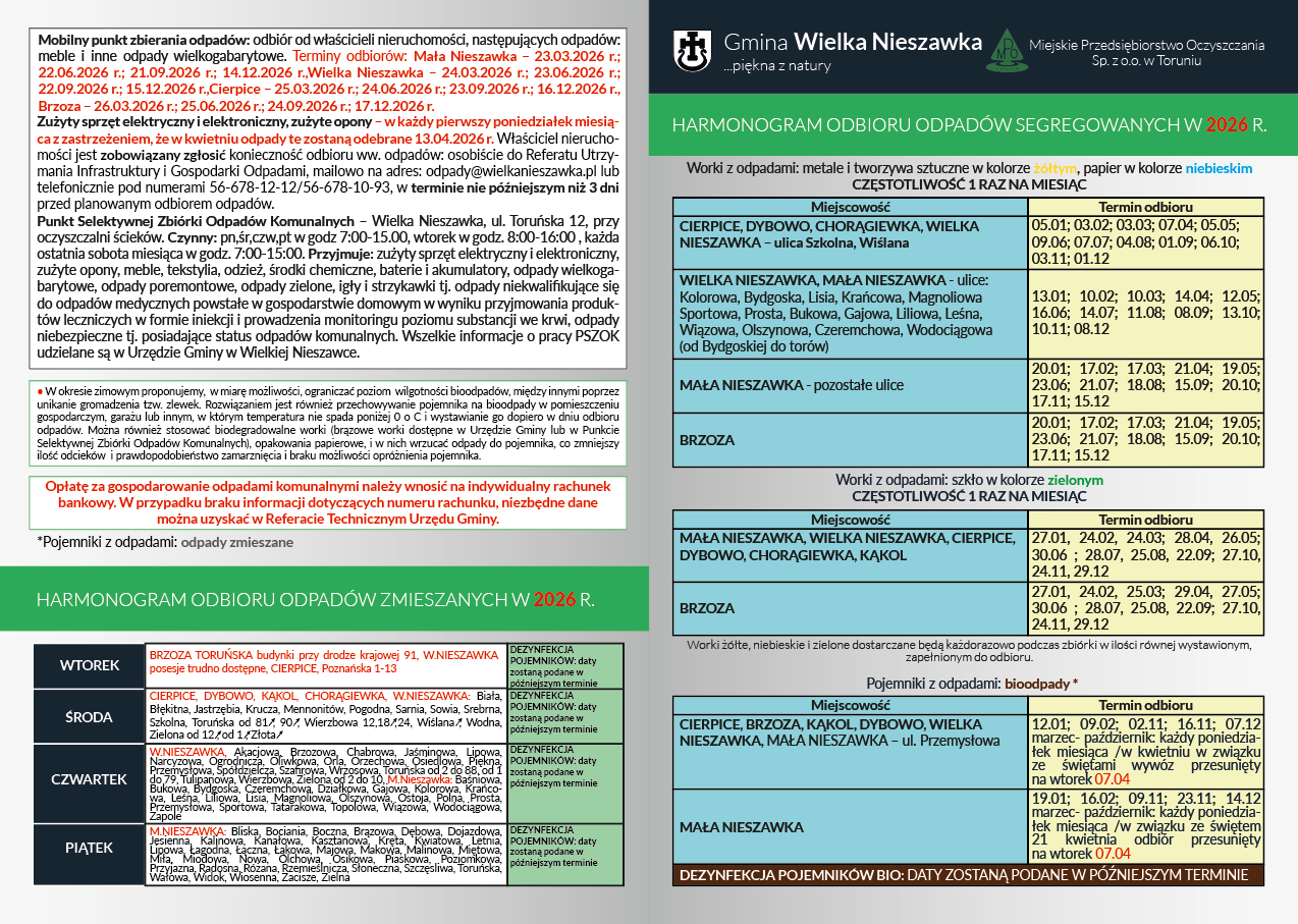 Dostępny jest harmonogram wywozu odpadów na rok 2026